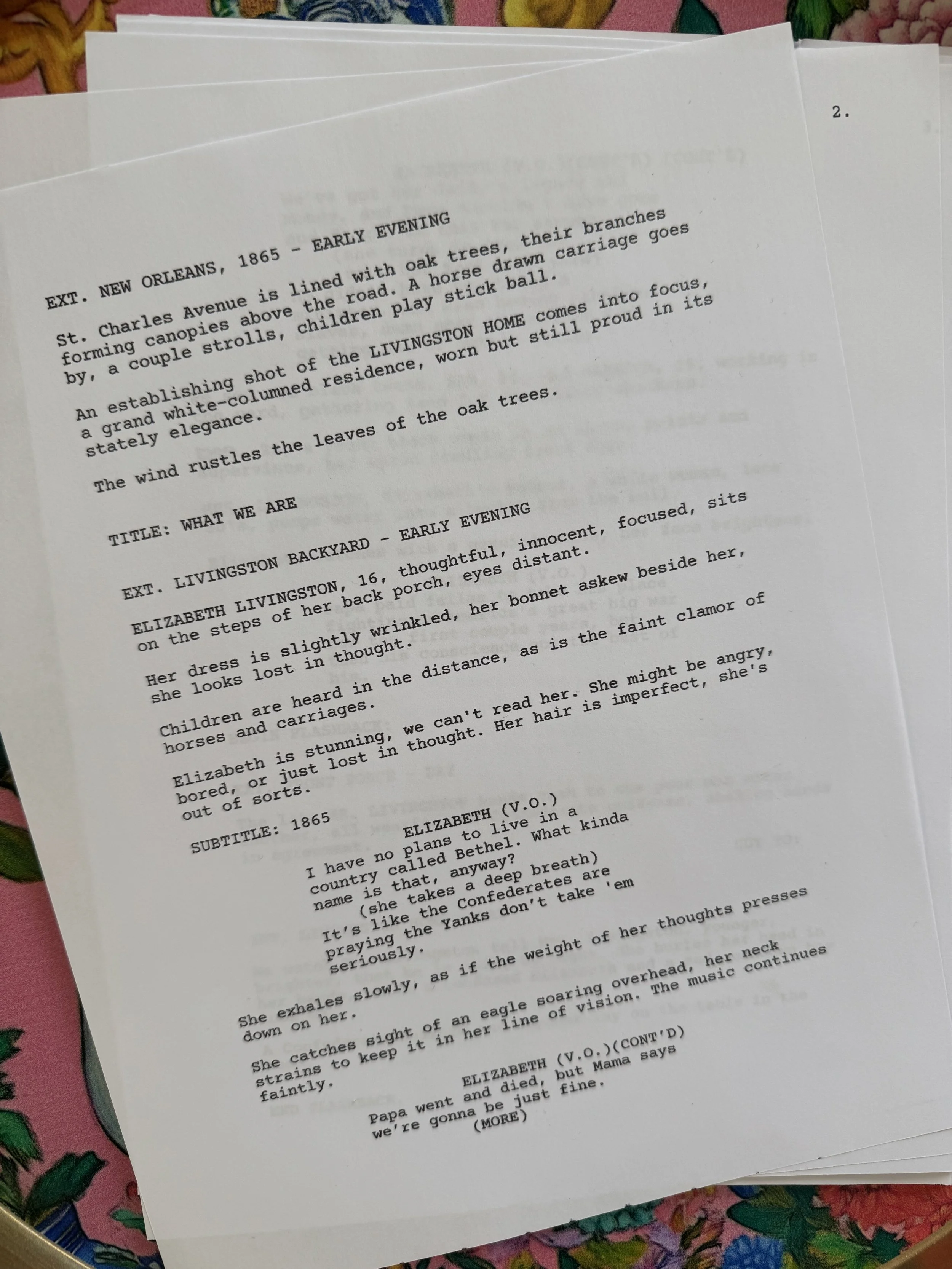 The screenplay is on the back burner while I work through the publishing process for my novel.